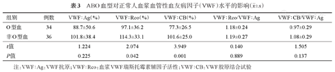 ABO血型对正常人血浆血管性血友病因子(VWF)水平的影响(