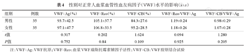 性别对正常人血浆血管性血友病因子(VWF)水平的影响(