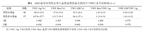 ABO血型对男性正常人血浆血管性血友病因子(VWF)水平的影响(