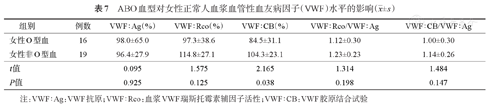 ABO血型对女性正常人血浆血管性血友病因子(VWF)水平的影响(