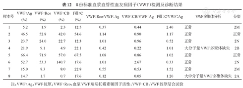 8份标准血浆血管性血友病因子(VWF)检测及诊断结果