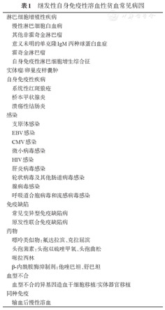 (3)依据红细胞自身抗体检测结果,分为自身抗体阳性型和自身抗体阴性型。自身抗体阴性型AIHA临床符合溶血性贫血,除外其他溶血性贫血而免疫抑制治疗有效。