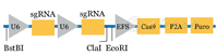 图1为构建成功质粒的简化示意图。该质粒为慢病毒载体,其转染包装细胞后产生的慢病毒可携带外源sgRNA和Cas9基因整合到目的细胞中,从而实现对目的基因的有效编辑。
