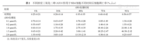 不同浓度三氧化二砷(ATO)作用于NB4细胞不同时间后细胞凋亡率(%,