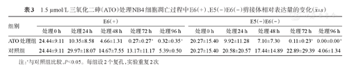 1.5 µmol/L三氧化二砷(ATO)处理NB4细胞凋亡过程中E6(+)、E5(-)E6(-)剪接体相对表达量的变化(