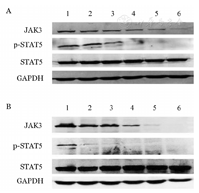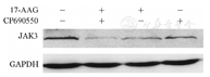 分别设立无刺激组、17-AAG+CP690550组、17-AAG组、CP690550组,作用于对数生长期HUT-102细胞24 h后收集细胞并提取总蛋白,Western blot检测JAK3蛋白表达情况。