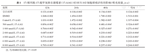 | 1 000 nmol/L17-AAG | 0.764±0.002a | 0.542±0.004a | 0.327±0.003a | 0.271±0.001a |