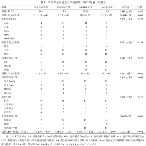 | 项目 | 亲子全相合组 | UD-HSCT组 | Sib-HSCT组 | Hi-HSCT组 | 统计量 | P值 | |