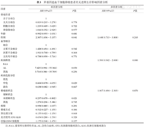 异基因造血干细胞移植患者的无进展生存影响因素分析