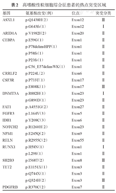 | ASXL1 | p.Q1438H(2) | Exon12 | Ⅲ |