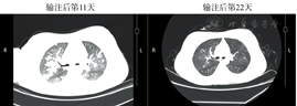 患者,女,12岁,2016年11月17日在外院诊断为B-ALL,当时融合基因筛查示E2A-PBX阳性,染色体核型分析示der(19),t(1;19)(q23; p13)。给予PVLD方案诱导治疗后取得完全缓解,之后予以CAM、PVLD及大剂量甲氨蝶呤(MTX)等方案化疗4个疗程。2017年6月5日患者疾病复发,2017年8月1日转至我科行CAR-T细胞治疗。2017年8月5日在患者父母签署知情同意书后,采取患者外周血60 ml用于制备CAR-T细胞,在等待CAR-T细胞回输期间,患者出现反复高热、齿龈疼痛及全身骨痛,外周血幼稚细胞增多,考虑疾病进展,给予VMP(长春地辛+米托蒽醌+甲泼尼龙)方案化疗控制肿瘤负荷,患者于9月18日出现2次癫痫发作(部分性发作),脑脊液常规生化检查及影像学检查未发现异常,予以卡马西平口服预防治疗。9月20日复查骨髓示原始淋巴细胞占0.940,血常规示HGB 71 g/L, PLT 16×109/L, WBC 6.4×109/L,中性粒细胞2.8×109/L,淋巴细胞0.8×109/L,幼稚细胞占0.38。血清细胞因子检测示IL-6 11.8 pg/ml(正常参考值<5.9 pg/ml),IL-2受体1 119 U/ml(正常参考值223~710 U/ml),TNF-α 6.3 pg/ml(正常参考值<8.1 pg/ml)。9月21日起予以FA(氟达拉滨25 mg/m2+阿糖胞苷1 g/m2)方案预处理化疗3 d,9月27日(第0天)起行患者自体CAR-T细胞输注,输注CAR-T细胞总量为0.3×106/kg,分2 d输注(第0天输注CAR-T细胞总量的30%,第1天输注细胞总量的70%)。患者于10月4日(第7天)开始出现发热且体温逐渐增高,血清细胞因子检测示IL-6 13.6 pg/ml,IL-2受体1 415 U/ml,TNF-α 11 pg/ml。10月5日(第8天)患者呈持续高热,体温最高达41.3 ℃,给予对乙酰氨基酚口服及物理降温等措施均退热效果不佳,予以托珠单抗(8 mg/kg)静脉滴注治疗后体温在2 h后明显下降,一度恢复至正常,次日起患者又出现发热,体温逐渐升高,10月7日(第10天)体温最高达39.9 ℃。10月8日(第11天)起患者出现胸闷、气急等不适,伴阵发性呛咳,指末氧饱和度下降至85%~92%,胸部CT示两肺多发渗出性改变(图1);血气分析提示低氧血症,血常规示HGB 67 g/L,PLT 17×109/L,WBC 1.18×109/L,中性粒细胞0.2×109/L,幼稚细胞占0.02;生化检查示总胆红素(TBIL)17.5 μmol/L(正常参考值5.1~20.5 µmol/L),ALT 199 U/L(正常参考值7~40 U/L),AST 949 U/L(正常参考值13~35 U/L),LDH 17 060 U/L(正常参考值120~250 U/L),尿酸539 μmol/L(正常参考值155~357 μmol/L);血清细胞因子检测示IL-6>1 000 pg/ml,IL-2受体2 985 U/ml。予以面罩吸氧(5 L/min),积极抗感染、保肝,水化、碱化和利尿治疗,并第二次使用托珠单抗(8 mg/kg)治疗。10月9日(第12天)患者体温恢复正常,但胸闷、气急症状无缓解,出现皮肤多处大片瘀斑,出凝血常规示凝血酶时间(TT)54.5 s(正常参考值14~21 s),APTT 37.5 s(正常参考值25.0~36.2 s),纤维蛋白原1.82 g/L(正常参考值2.00~4.50 g/L),D-二聚体37.03 mg/L(正常参考值<0.55 mg/L),纤维蛋白降解产物(FDP)112.2 g/L(正常参考值2.0~4.5 g/L);生化检查示TBIL 48.6 µmol/L,ALT 250 U/L,AST 1 102 U/L,LDH 18 561 U/L。患者肝功能损害及凝血功能障碍加重,加强保肝和输注血浆、血小板等支持治疗;予以甲泼尼龙(40 mg每12 h 1次)静脉滴注,BiPAP呼吸机辅助通气。之后患者皮肤出血倾向改善,胸闷气急症状好转,氧需求量逐渐减少。10月12日(第15天)复查血常规示外周血幼稚细胞消失,出凝血常规示APTT 20 s,TT 30.2 s,D-二聚体11. 31 mg/L,FDP 53.2 g/L,肝功能检查示TBIL 35.1 µmol/L,ALT 117 U/L,AST 329 U/L,均较前好转,停止BiPAP呼吸机使用。10月14日(第17天)下午起患者突然出现四肢抽搐伴双眼凝视,每次持续5~10 min,之后反复发作,发作间期意识不清,考虑为癫痫持续状态。脑电图显示背景活动见α节律,间有θ波及少量低波幅β波,双侧额颞顶部偶见尖慢波发放,支持大脑皮层的广泛损害表现。予以地西泮(微泵静注5 mg/h)抗癫痫,甘露醇脱水,激素改为地塞米松(10 mg每6 h 1次)静脉滴注治疗,2 d后患者意识恢复正常,无癫痫发作,予以口服丙戊酸钠维持治疗,此时检查头部MRI可见两侧大脑皮层散在片状异常信号影(图2);激素逐渐减量至10月19日(第22天)停用。10月25日(第28天)血常规示HGB 95 g/L,PLT 13×109/L,WBC 1.06×109/L,中性粒细胞0.2×109/L,无幼稚细胞;C反应蛋白(CRP)0.1 mg/L;肝肾功能、出凝血常规及D-二聚体、FDP均正常;血清细胞因子IL-6 199 pg/ml,IL-2受体1 463 U/ml,TNF-α 19.1 pg/ml。10月30日(第33天)好转出院。