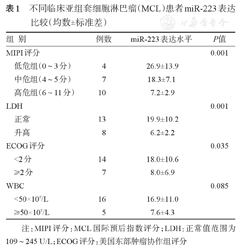 不同临床亚组套细胞淋巴瘤(MCL)患者miR-223表达比较(均数±标准差)