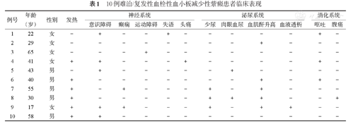 10例难治/复发性血栓性血小板减少性紫癜患者临床表现