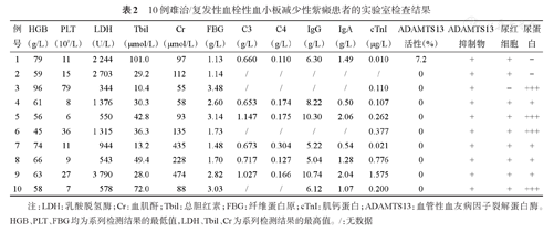 10例难治/复发性血栓性血小板减少性紫癜患者的实验室检查结果