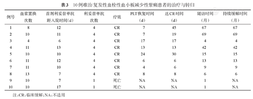 10例难治/复发性血栓性血小板减少性紫癜患者的治疗与转归