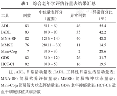 注:ADL:日常活动量表;IADL:工具性日常生活活动量表;MNA-SF:简易营养评估量表;MMSE:简易精神状态量表;Mini-Cog:简易智力状态评估量表;GDS:老年抑郁量表;HCT-CI:造血干细胞移植共病指数