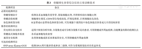 MDS诊断依赖于多种实验室检测技术的综合使用,其中骨髓穿刺涂片细胞形态学和细胞遗传学检测技术是MDS诊断的核心(表3)。
