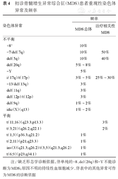 注:a缺乏形态学诊断依据,伴单纯的+8、del(20q)和-Y不能诊断为MDS;原因不明的持续性血细胞减少,伴表中的其他异常可作为MDS的诊断依据
