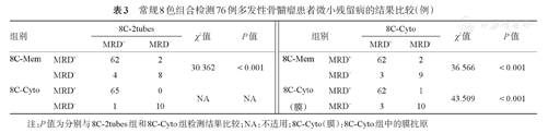 常规8色组合检测76例多发性骨髓瘤患者微小残留病的结果比较(例)
