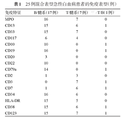 | 免疫特征 | B/髓系(17例) | T/髓系(7例) | T/B(1例) |