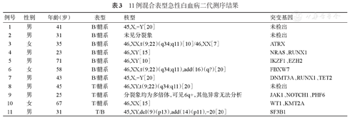 | 3 | 女 | 35 | B/髓系 | 46,XX,t(9;22)(q34;q11)[10]/46,XX[7] | ATRX |