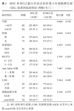 | DEL | 非DEL | GCB | non-GCB | 结内 | 结外 | 0~2分 | 3~5分 | Ⅰ~Ⅱ期 | Ⅲ~Ⅳ期 | 正常 | 升高 | |||