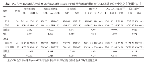 P53和BCL2蛋白强表达可作为双表达淋巴瘤进一步分层诊断和评估预后的生物学指标。