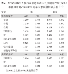 MYC和BCL2蛋白双表达弥漫大B细胞淋巴瘤(DEL)中各因素对OS和PFS的单因素和多因素分析