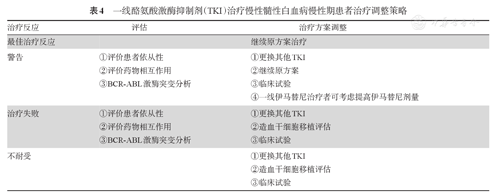 一线酪氨酸激酶抑制剂(TKI)治疗慢性髓性白血病慢性期患者治疗调整策略