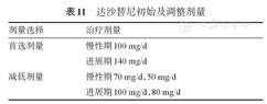 | 减低剂量 | 慢性期70 mg/d,50 mg/d |