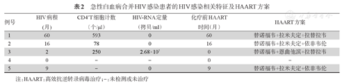 急性白血病合并HIV感染患者的HIV感染相关特征及HAART方案