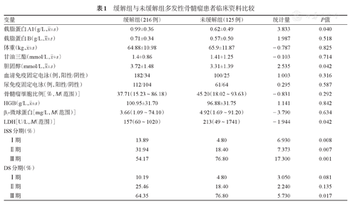 缓解组与未缓解组多发性骨髓瘤患者临床资料比较