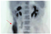 免疫抑制治疗在CAMT等遗传性骨髓衰竭综合征中无效,异基因造血干细胞移植(allo-HSCT)是唯一的根治性手段,在2011年的1项研究中,36例CAMT患者HSCT后26例(72%)无病存活[1]。但妨碍本例患者进行移植、甚至可能明显缩短患者生存期的问题为肠道病变,升结肠及回盲部肠壁增厚、溃疡,PET/CT提示局部高代谢,活检病理提示不典型淋巴增殖性病变,高度怀疑淋巴瘤。