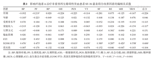 影响环孢素A治疗非重型再生障碍性贫血患者SF-36量表得分改善因素的偏相关系数
