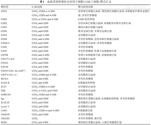 血液系统肿瘤嵌合抗原T细胞(CAR-T细胞)靶点汇总