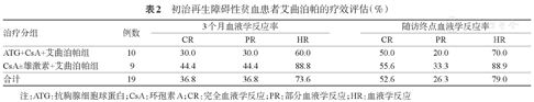 | CsA±雄激素+艾曲泊帕组 | 9 | 44.4 | 44.4 | 88.8 | 55.6 | 33.3 | 88.9 |