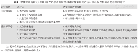 中性粒细胞缺乏(粒缺)伴发热患者升阶梯和降阶梯策略的适应证和经验性抗菌药物选择的建议