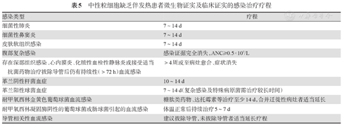 中性粒细胞缺乏伴发热患者微生物证实及临床证实的感染治疗疗程