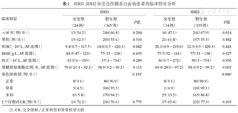 IDH1、IDH2突变急性髓系白血病患者的临床特征分析