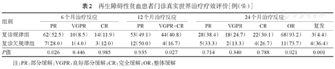 | 组别 | 6个月治疗反应 | 12个月治疗反应 | 24个月治疗反应 | |||||||