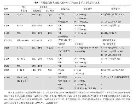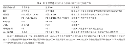罕见遗传性出血性疾病(RBD)的止血水平及替代治疗方案