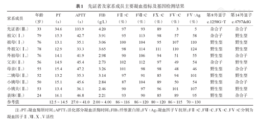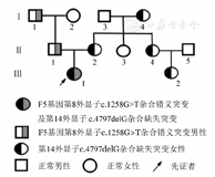 该家系F5第8外显子c.1258G>T杂合错义突变及第14外显子c.4797delG杂合缺失突变可能与该家系FⅤ水平降低有关。