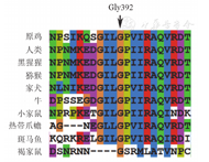 ClustalX软件的保守性分析结果表明,p.Gly392在同源物种间高度保守(图4)。