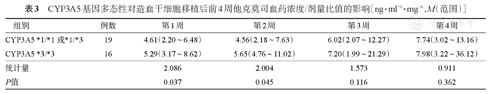 | CYP3A5 *1/*1或*1/*3 | 19 | 4.61(2.20~6.48) | 4.56(2.18~7.63) | 6.02(2.07~12.27) | 7.74(3.02~13.16) |