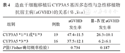 造血干细胞移植后CYP3A5基因多态性与急性移植物抗宿主病(aGVHD)的关系(%,