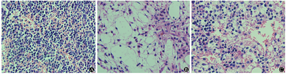 与正常小鼠比较,PBS+AA组小鼠的HGB、WBC、PLT及ANC均显著下降(P值均<0.05);和PBS+AA组相比,CLO+AA组小鼠的HGB和PLT均显著升高(P值均<0.05),和正常对照组相比差异均无统计学意义。PBS+AA组和CLO+AA组的WBC和ANC均明显低于正常对照组(P值均<0.05)(表1)。骨髓病理显示,与PBS+AA组相比,CLO+AA组小鼠的骨髓脂肪化程度较轻微,油滴更少(图1)。