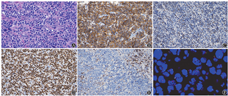 病理形态上,BLL-11q与BL相似,肿瘤细胞弥漫性生长,中等大小,单一形态,核圆、核仁小,胞质嗜碱,吞噬细胞"星空现象"多见[1,2,3,4]。但与BL相比,BLL-11q核碎片现象更为明显,在一个包含33例患者的双盲研究中,"核碎片"现象预测潜在的11q异常的特异性达到91%[5]。