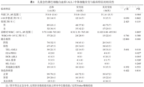 儿童急性淋巴细胞白血病(ALL)中体细胞突变与临床特征的相关性