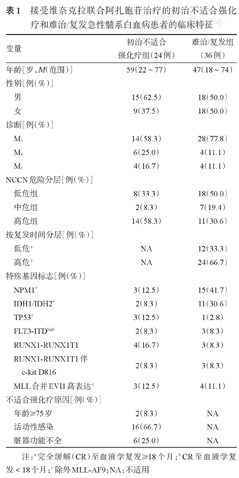 接受维奈克拉联合阿扎胞苷治疗的初治不适合强化疗和难治/复发急性髓系白血病患者的临床特征