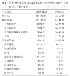 | 白细胞减少 | 35(58.3) | 16(26.7) | |